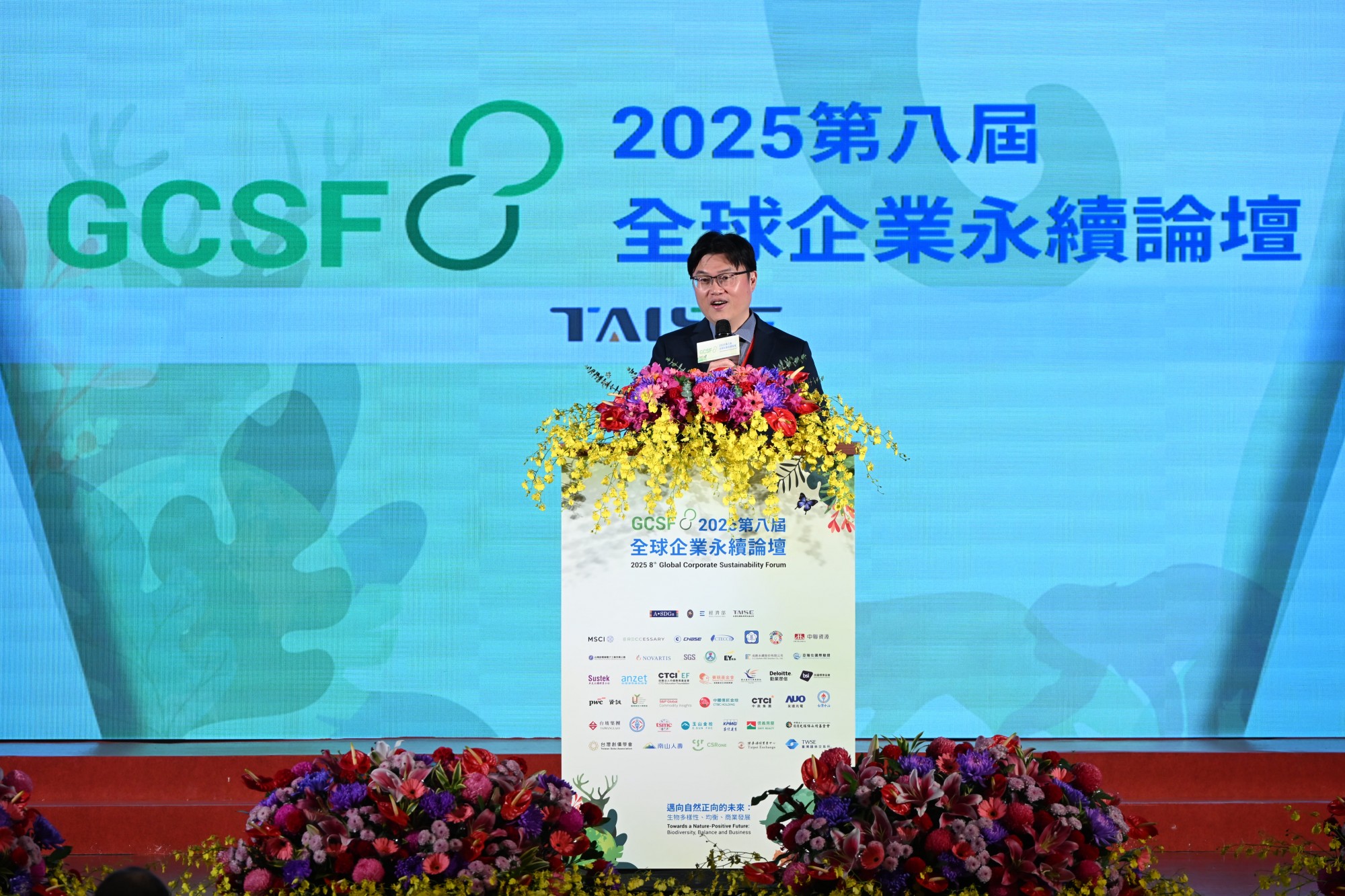 此外,他也分享了TAISE在推動社會系統永續方面的成果。TAISE已與全國70所大學、150 家醫院簽署合作備忘錄,涵蓋全國七成學生與六成五病床數,象徵永續已從企業與產業鏈擴展至教育、醫療與整體社會系統。他也強調,這樣的跨界合作將形成台灣推動永續轉型的集體力量。