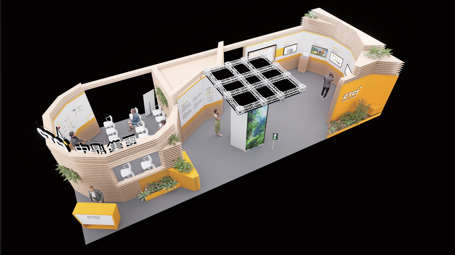 整體材質選用環保素材,展後全面回收。以電子螢幕取代70%紙本平面輸出,並採用節能燈具與設備。透過可重複展示的紙雕藝術、植栽及過往製作物活化再設計,實現超過70%的物料減廢目標。