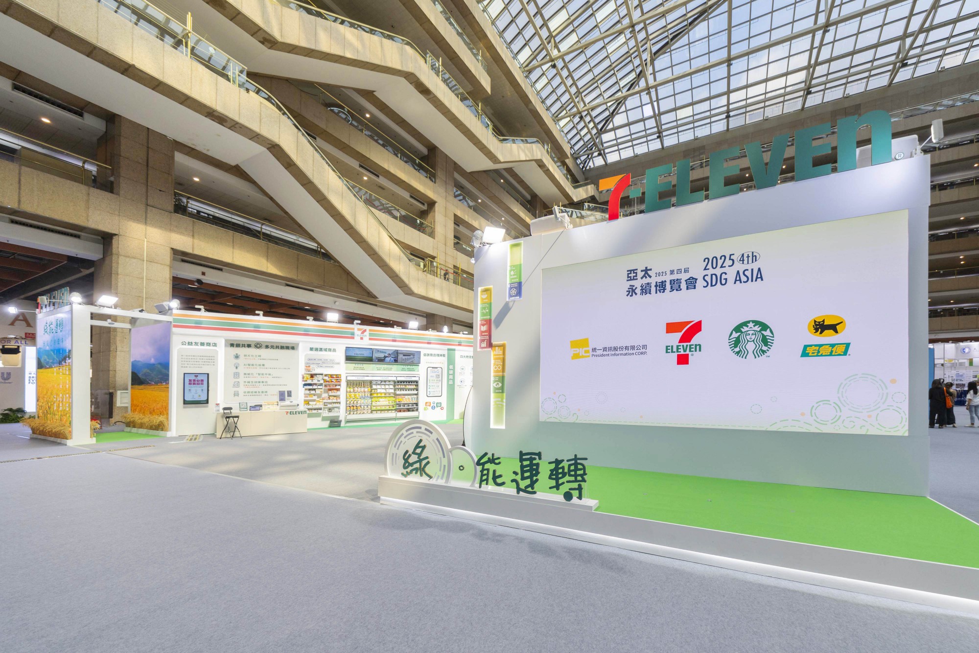 7-ELEVEN綠。能 運轉統一超商今年集結7-ELEVEN、星巴克、統一速達(黑貓宅急便)、統一資訊共同策展,打造亞太永續博覽會最大企業展區,以「7-ELEVEN綠。能 運轉」為主軸,呈現通路如何攜手供應鏈實踐低碳生活,展現零售永續新能量。