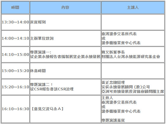 1/22(四) 證交所「企業社會責任報告書-展現永續經營價值」研討會