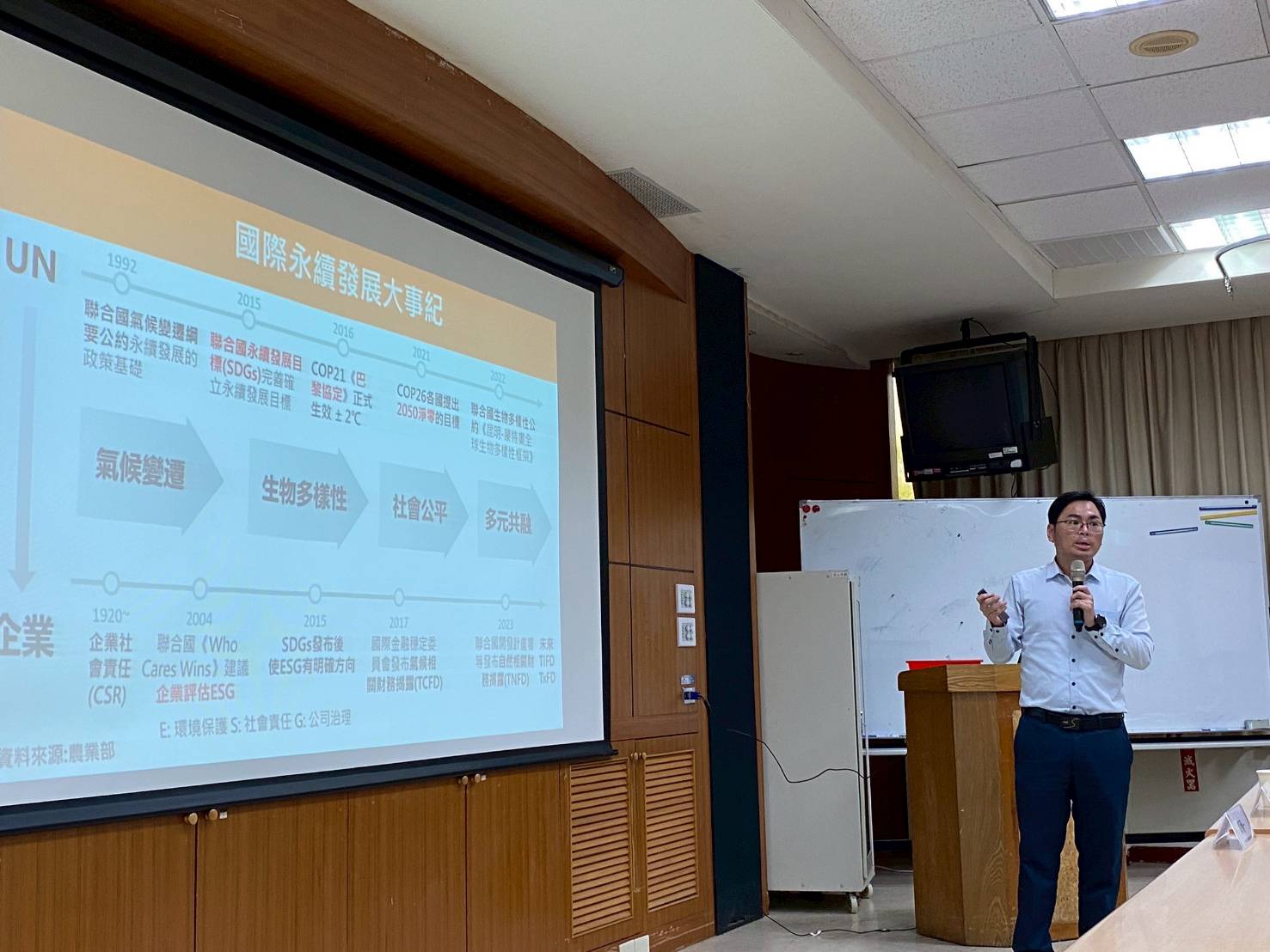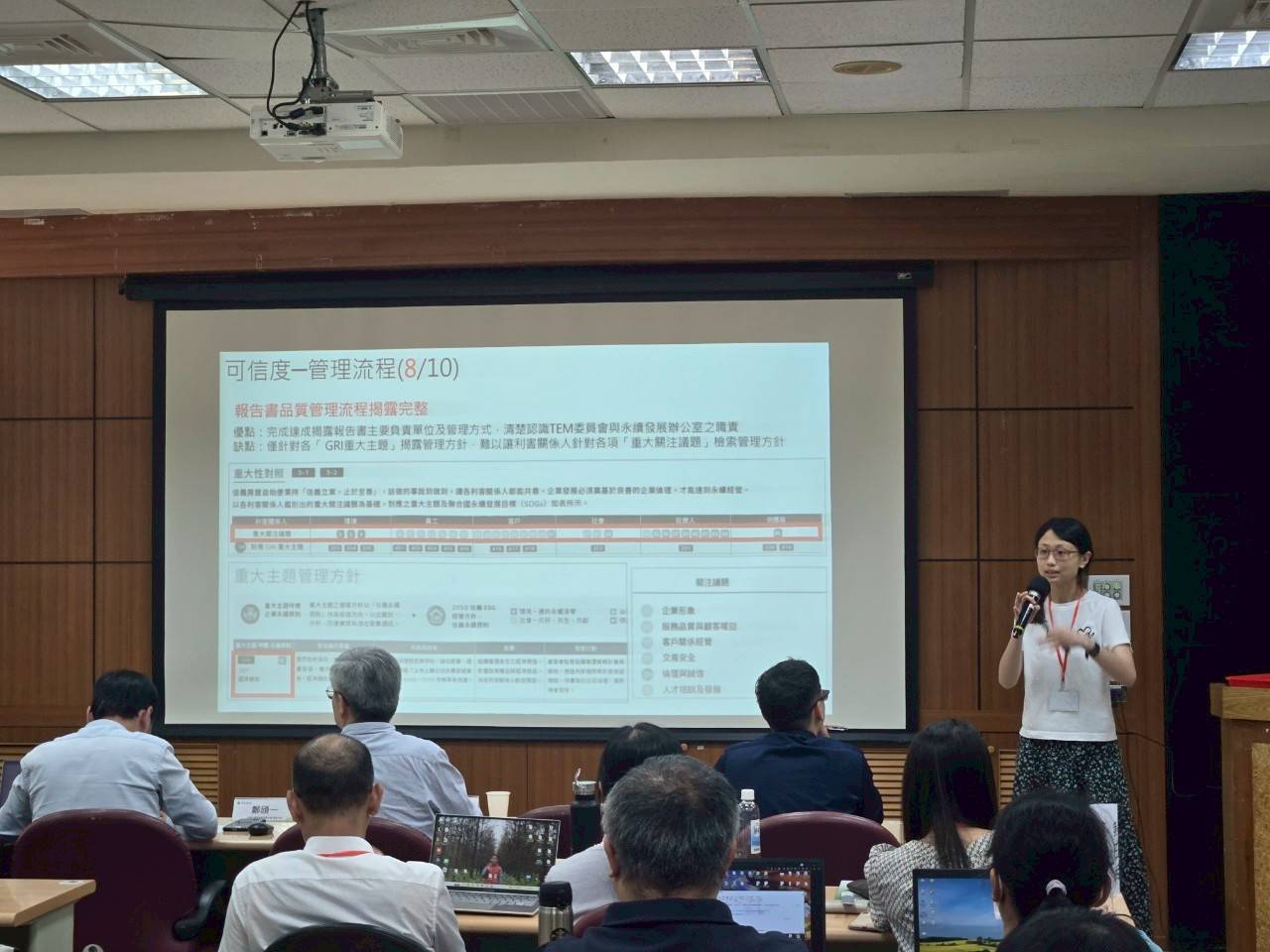 ▲ 鄭頎一副執行長講授TCSA台灣企業永續報告獎之評選流程