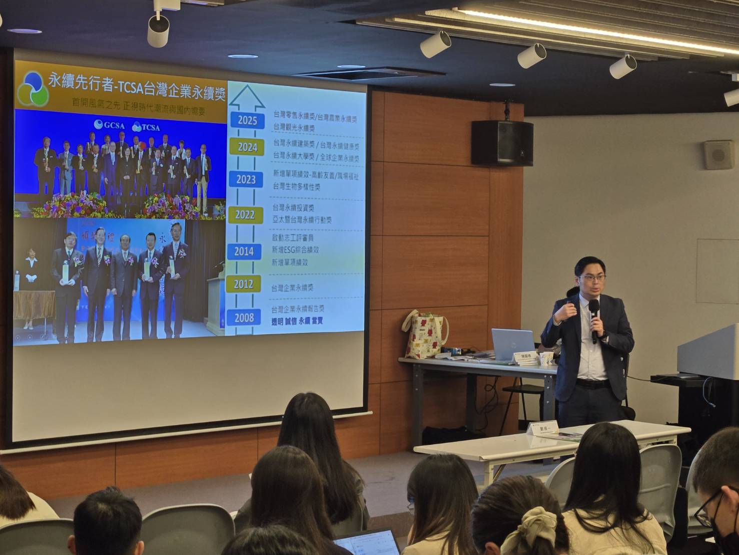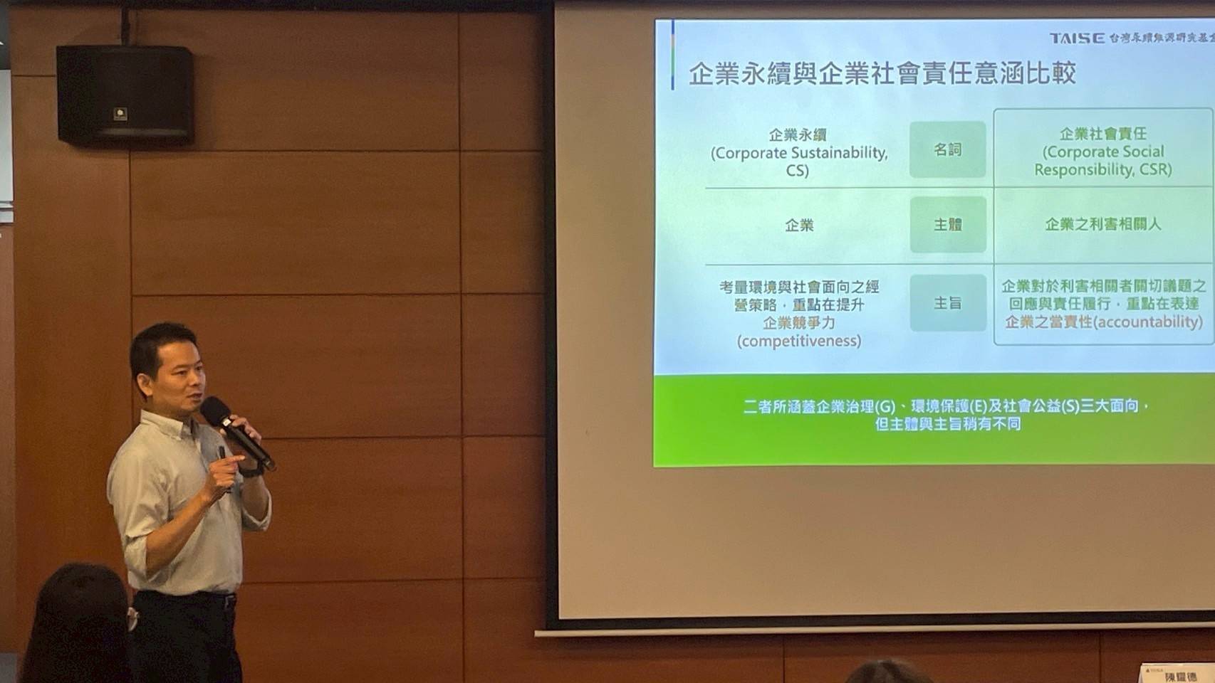 ▲鄭頎一副執行長講授透析TCSA台灣企業永續獎之評選流程
