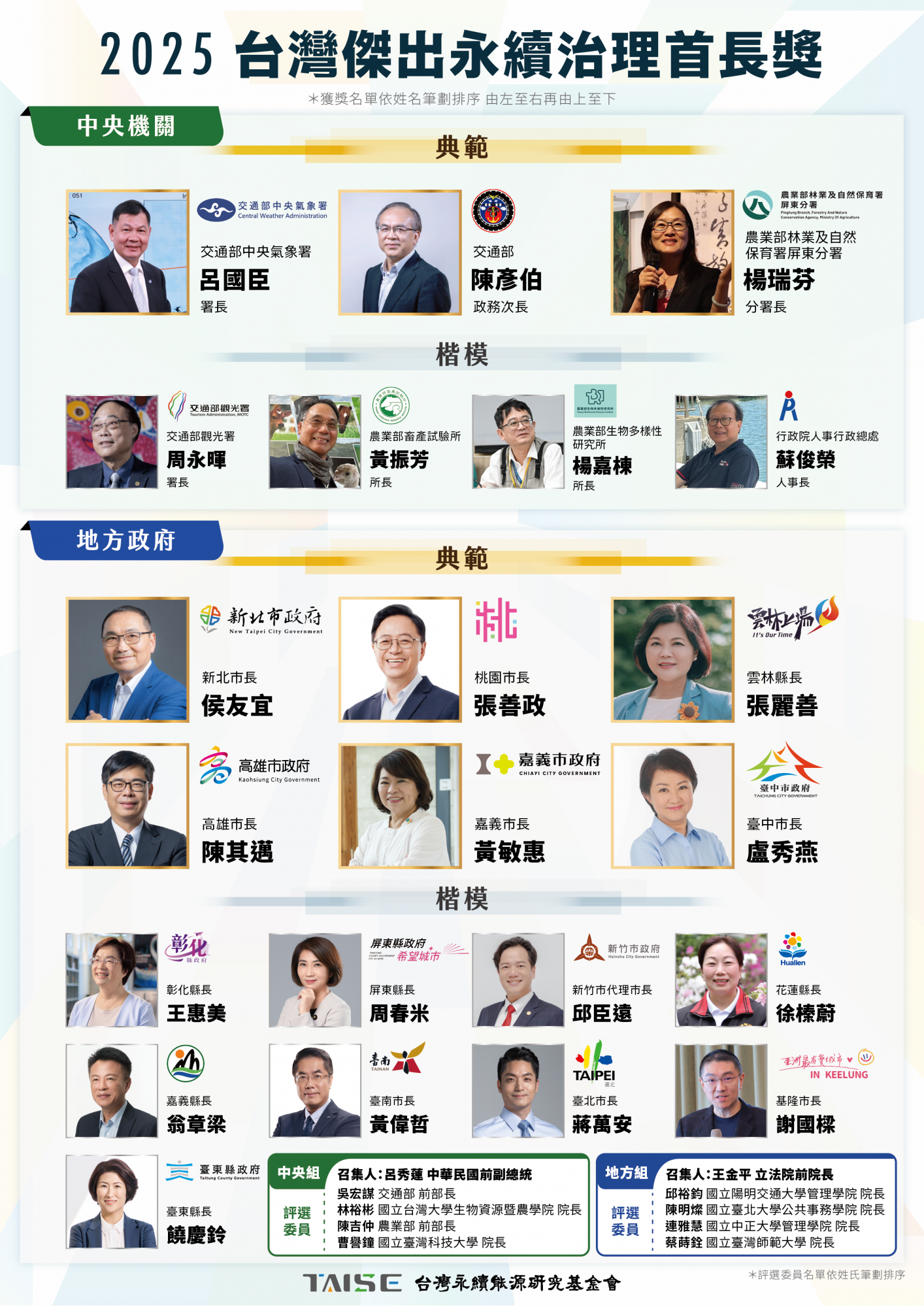 2025 台灣傑出永續治理首長獎 榜單揭曉