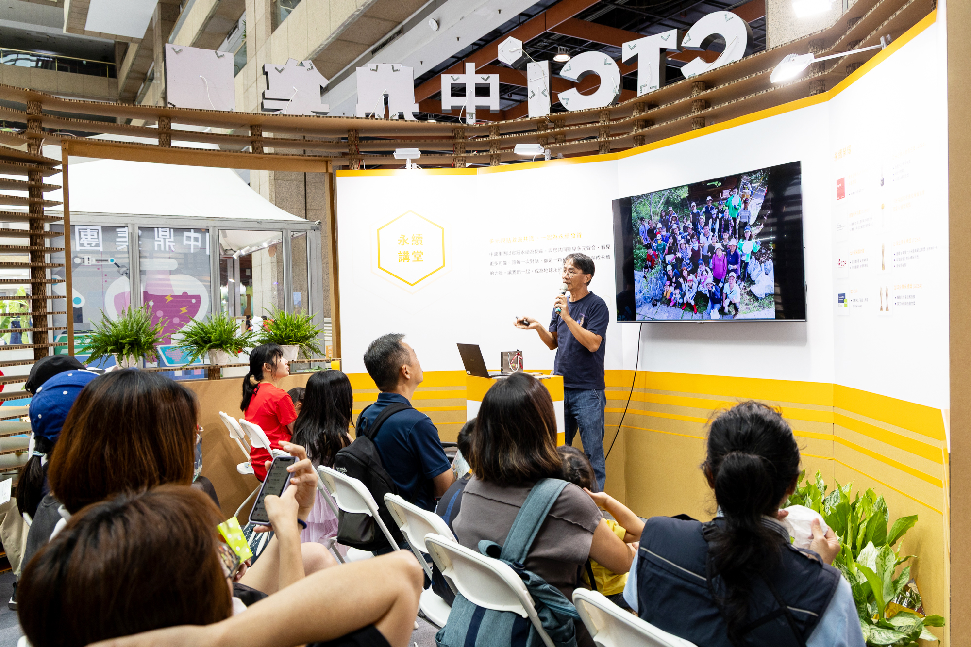中鼎集團融合工藝設計呈現永續工程理念,並在展館內搭建多元共學講堂,與參觀民眾近距離互動。