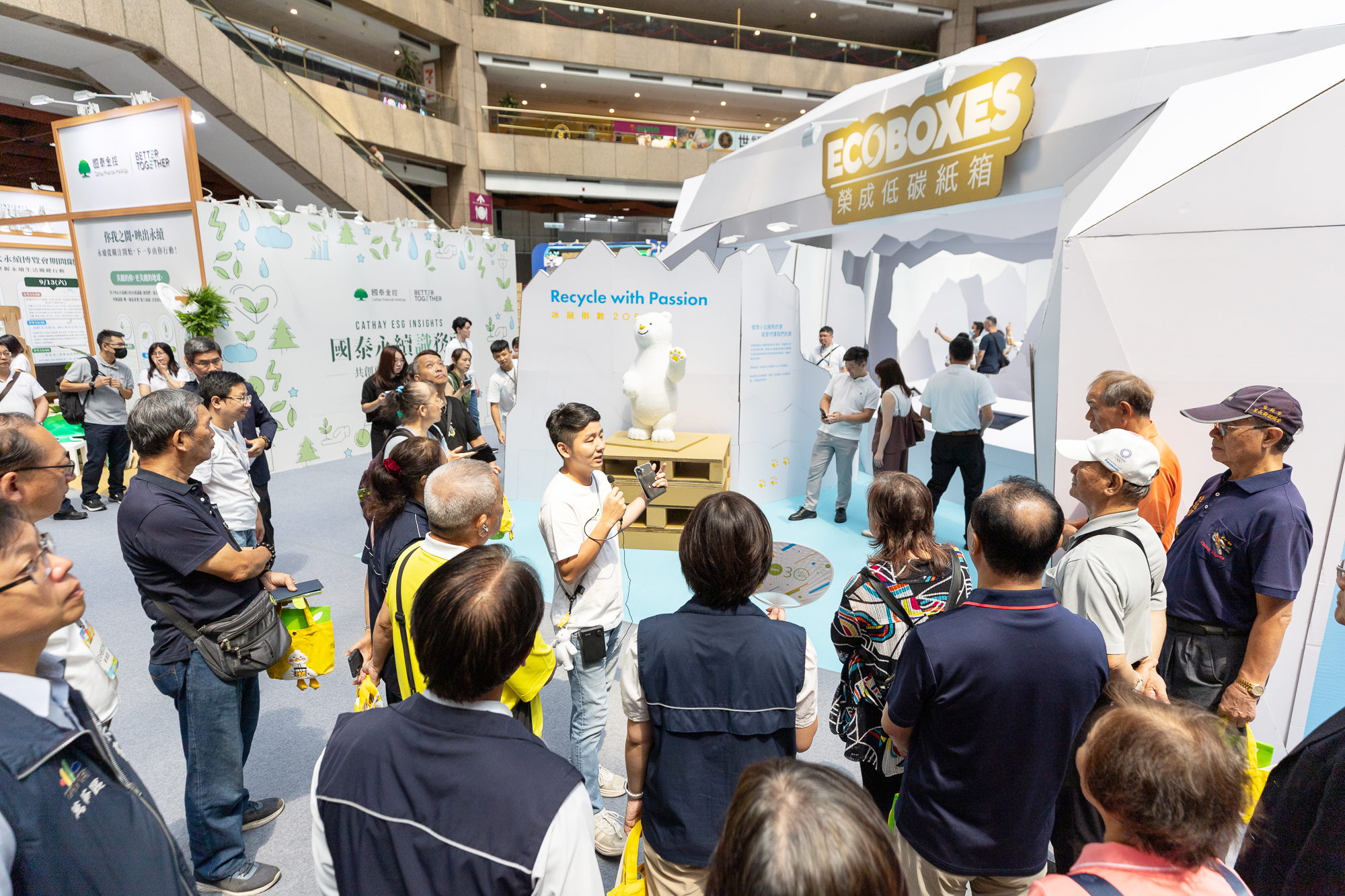 榮成紙業搭建巨型冰山展館,展現自家低碳製紙技術專業,同時傳遞企業永續作為與環境教育理念,搭配吉祥物互動尋寶遊戲,成為展場亮點。