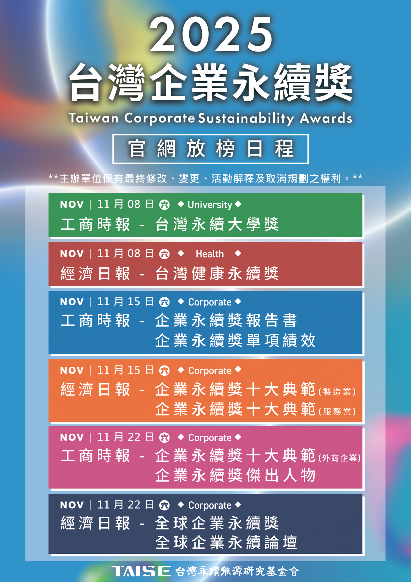 2025 企業/大學/健康永續獎 活動時程