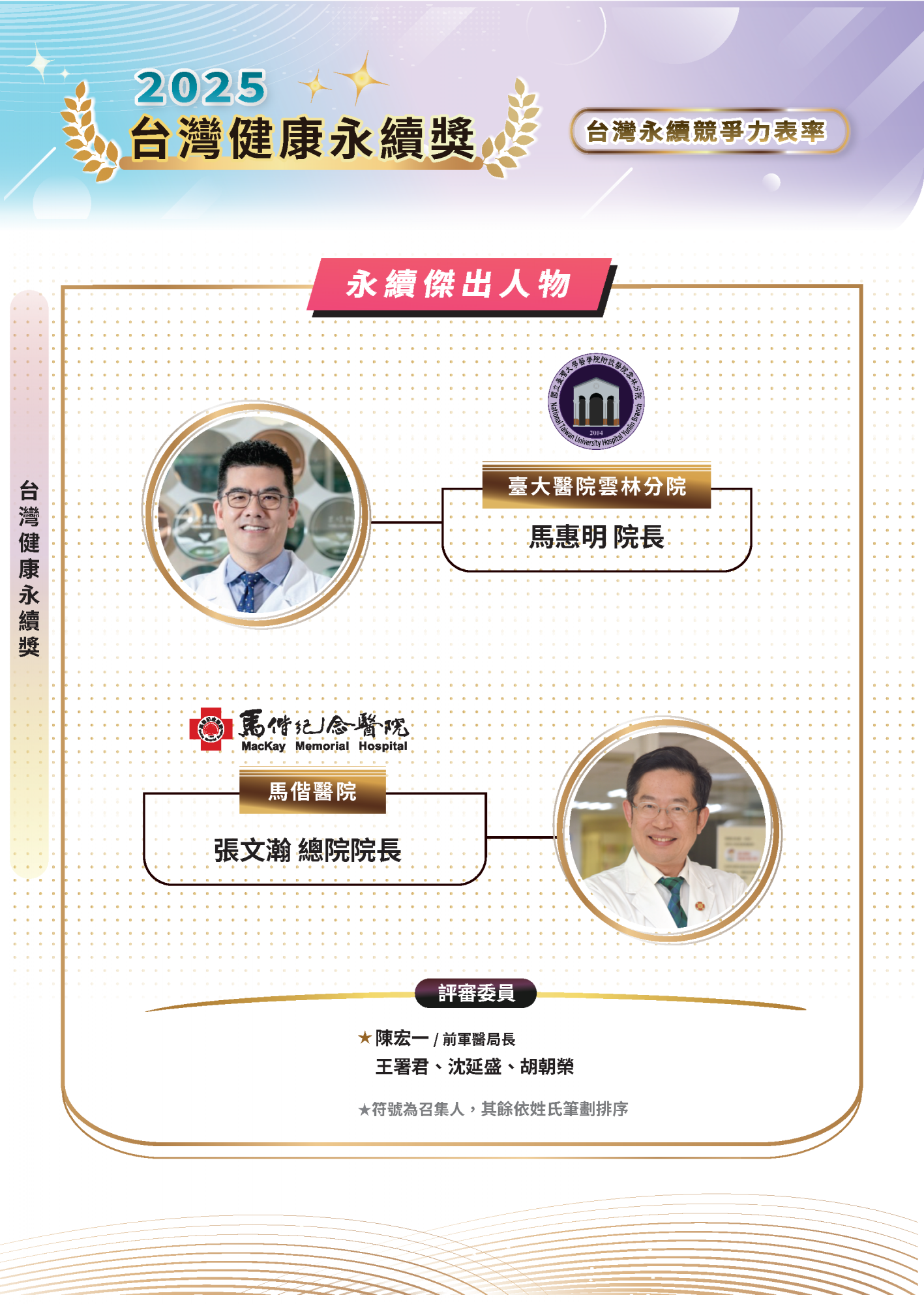 2025台灣健康永續獎-傑出人物》臺大雲林分院 馬惠明院長、馬偕紀念醫院 張文瀚總院長