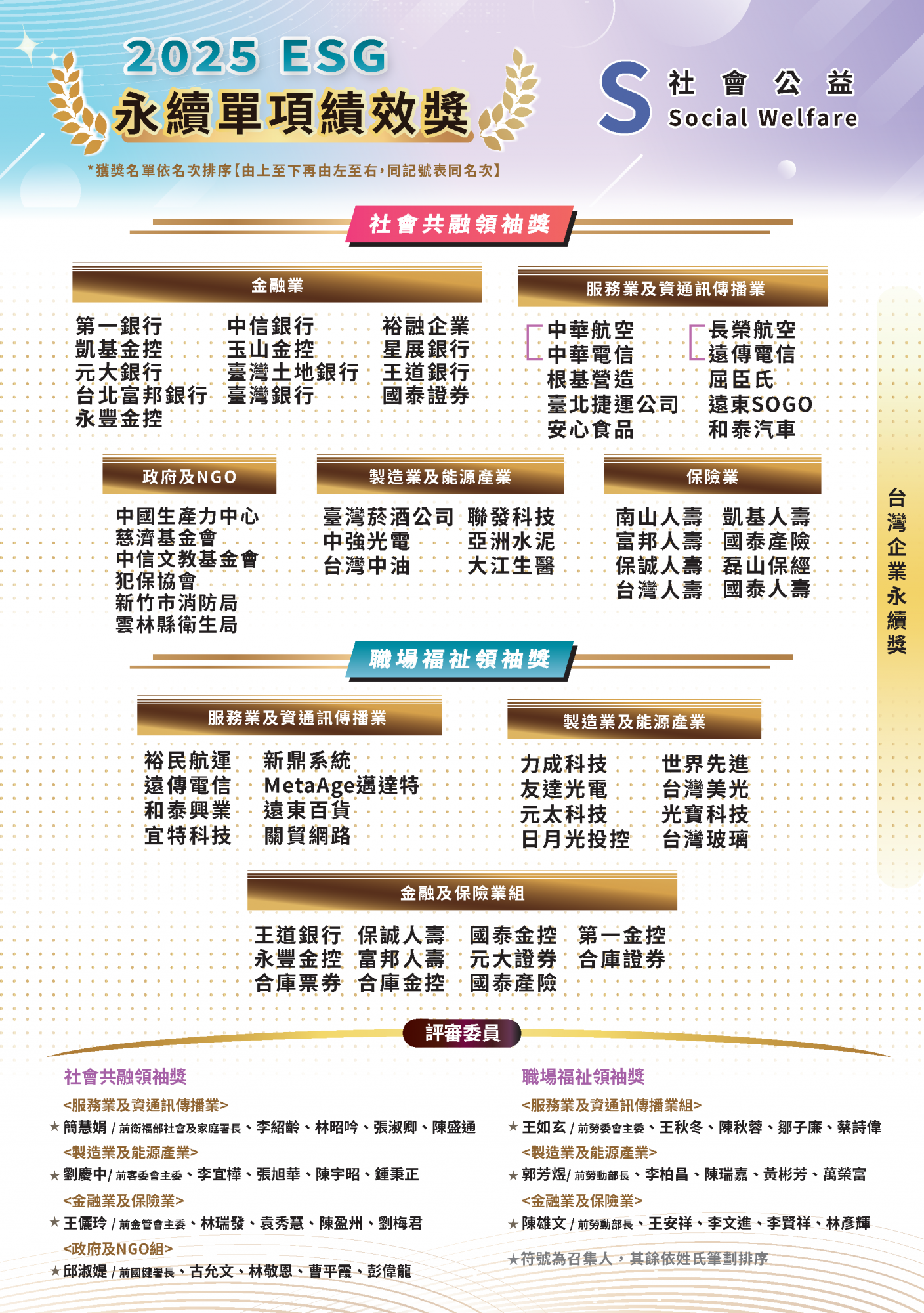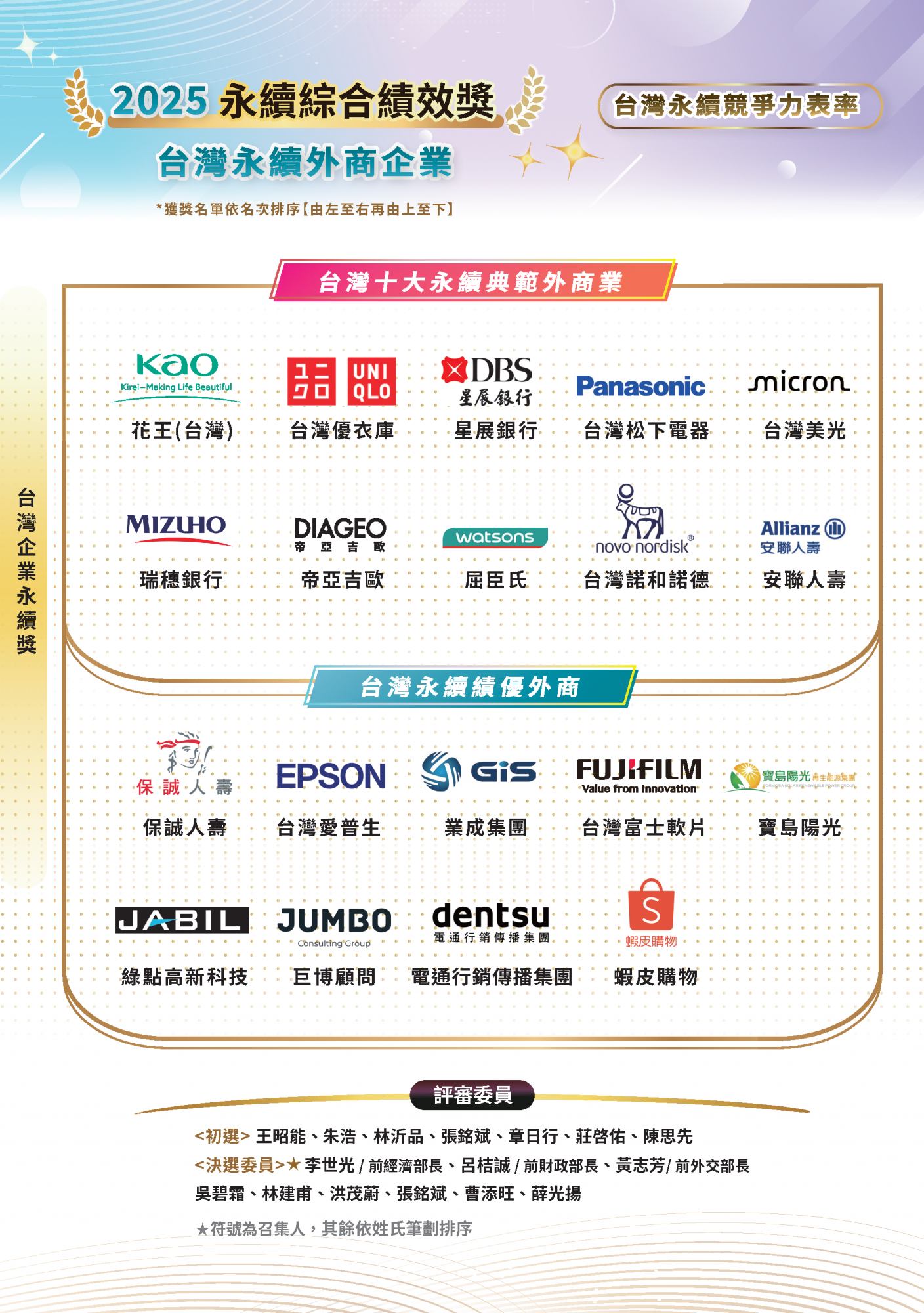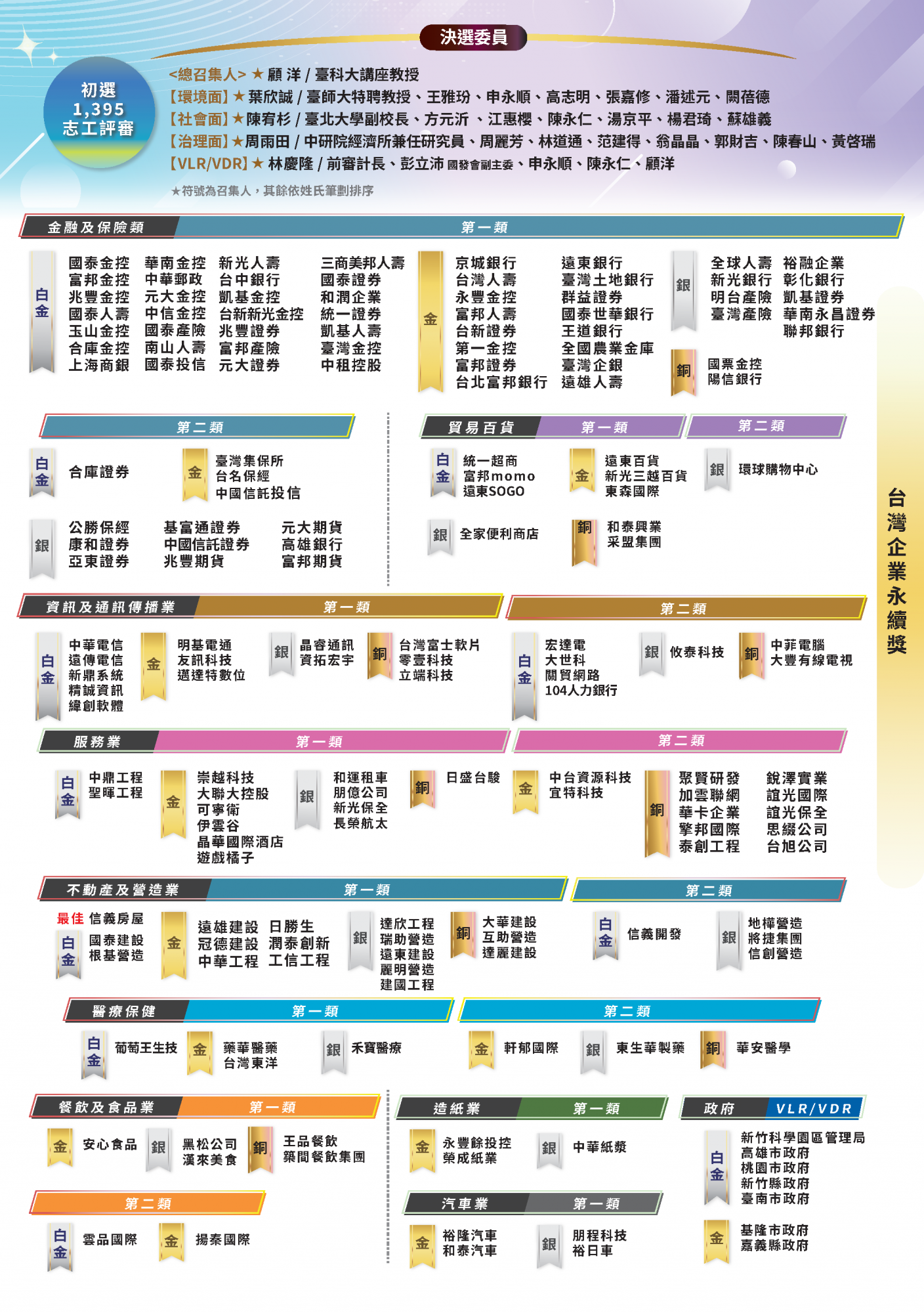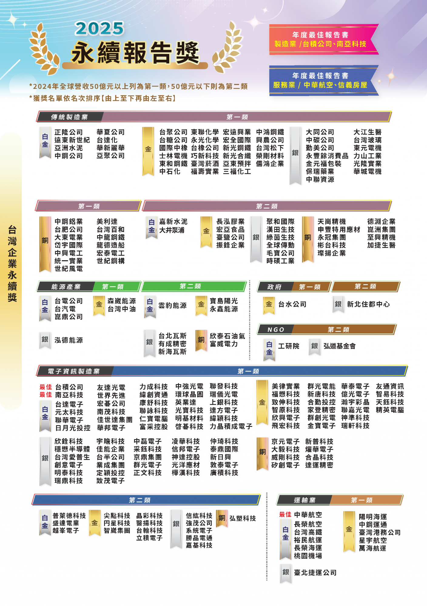 2025.11.15 2025 台灣企業永續獎 榜單揭曉 永續傑出人物 台灣十大永續典範企業 台灣百大永續典範企業 台灣永續績優企業台灣永續典範/績優外商 永續單項績效 永續報告書 永續傑出人物回榜單選項十大永續典範企業回榜單選項台灣百大永續典範企業 回榜單選項台灣永續績優企業回榜單選項台灣永續典範/績優外商回榜單選項永續單項績效 回榜單選項永續報告書回榜單選項
