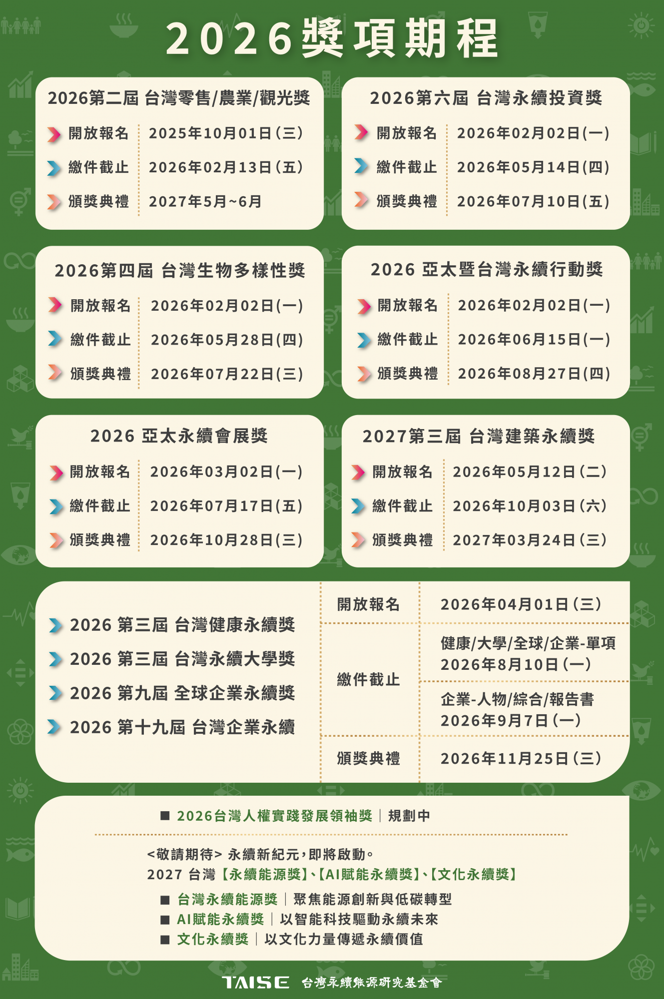 2026各獎項期程公告